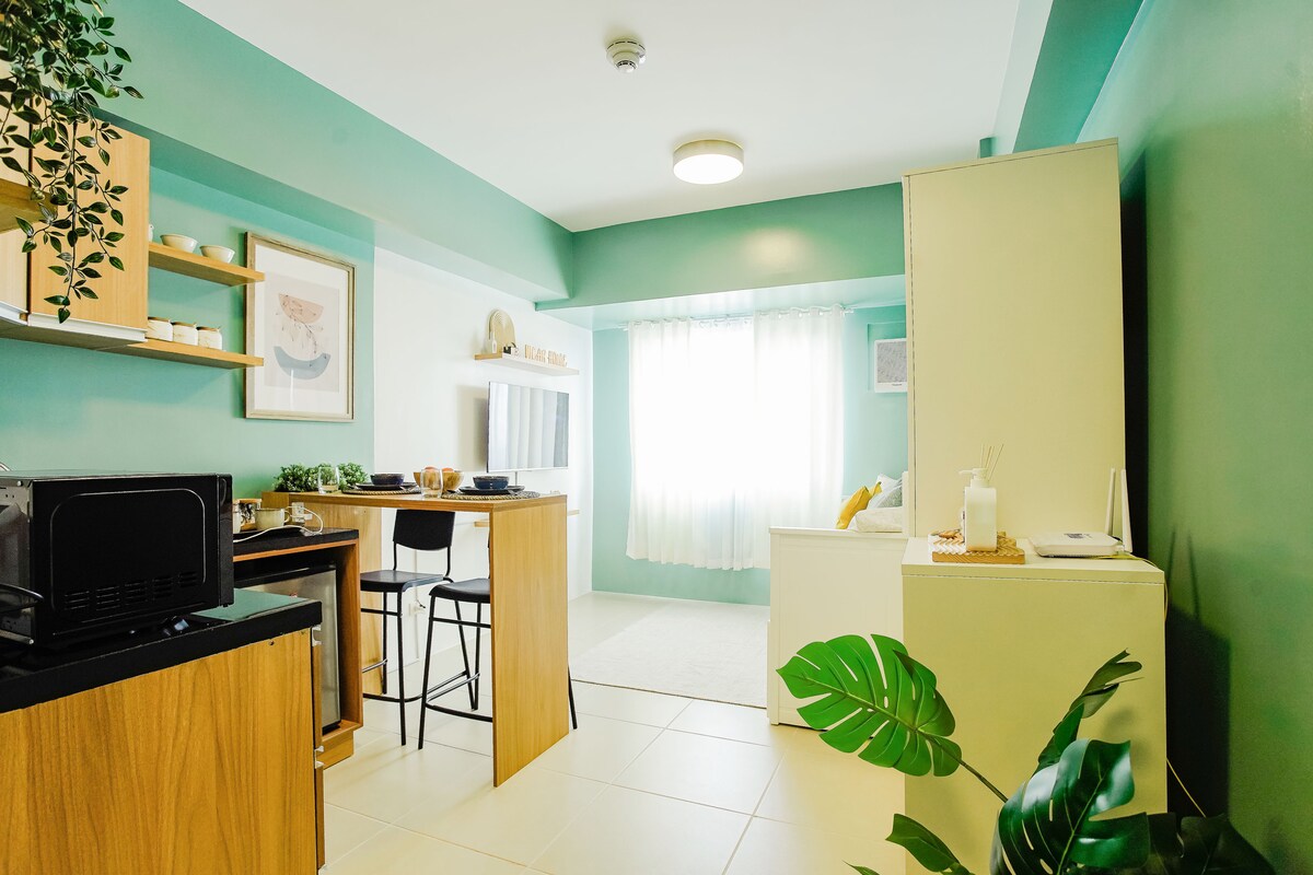 Enjoy a relaxing minimalist BRAND NEW studio unit just kilometres away from tourist destinations such as People’s Park, Picnic Grove, Sky Ranch and many more. Few steps away from Ayala Mall Serin, where you can access restaurants, fast food, coffee shops, groceries, etc. Vicar Home is a BRAND NEW modern studio condominium unit with a combination of greenery and cosy lighting perfectly for a serene, warm and inviting feel. The comforts of a vacation lifestyle.