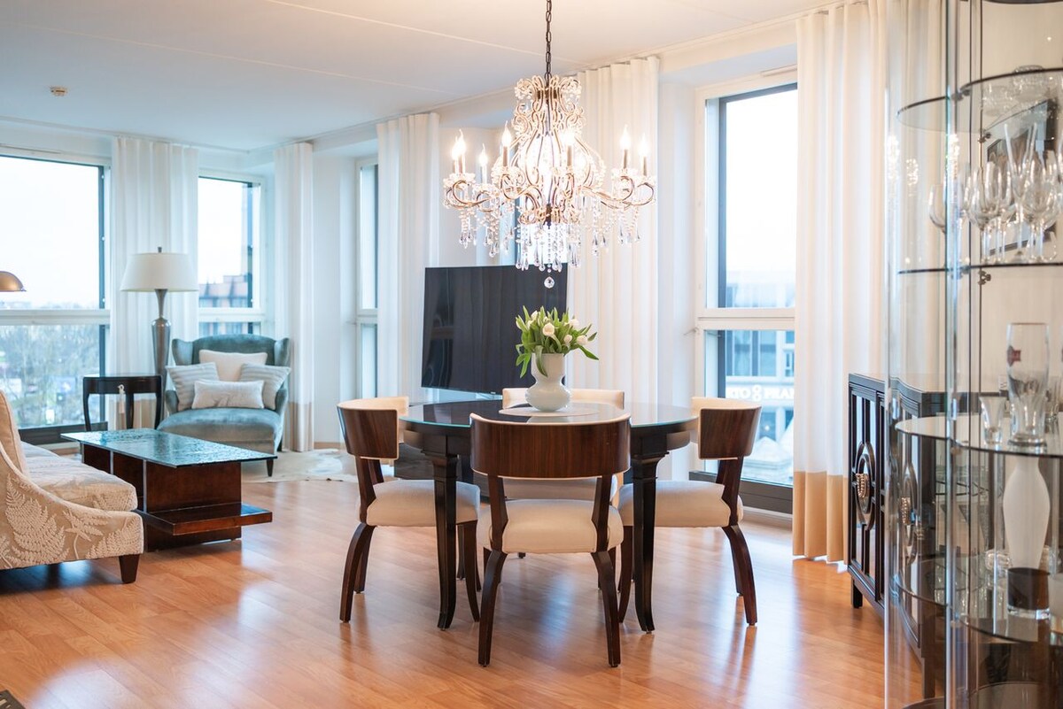 The contemporary penthouse with magnificent views of the rooftops and towers is conveniently located in a historical 14th century building the heart of Tallinn’s Old Town. You can easily enjoy the charm of Old Town by walking along the narrow streets to numerous restaurants, shops, museums.