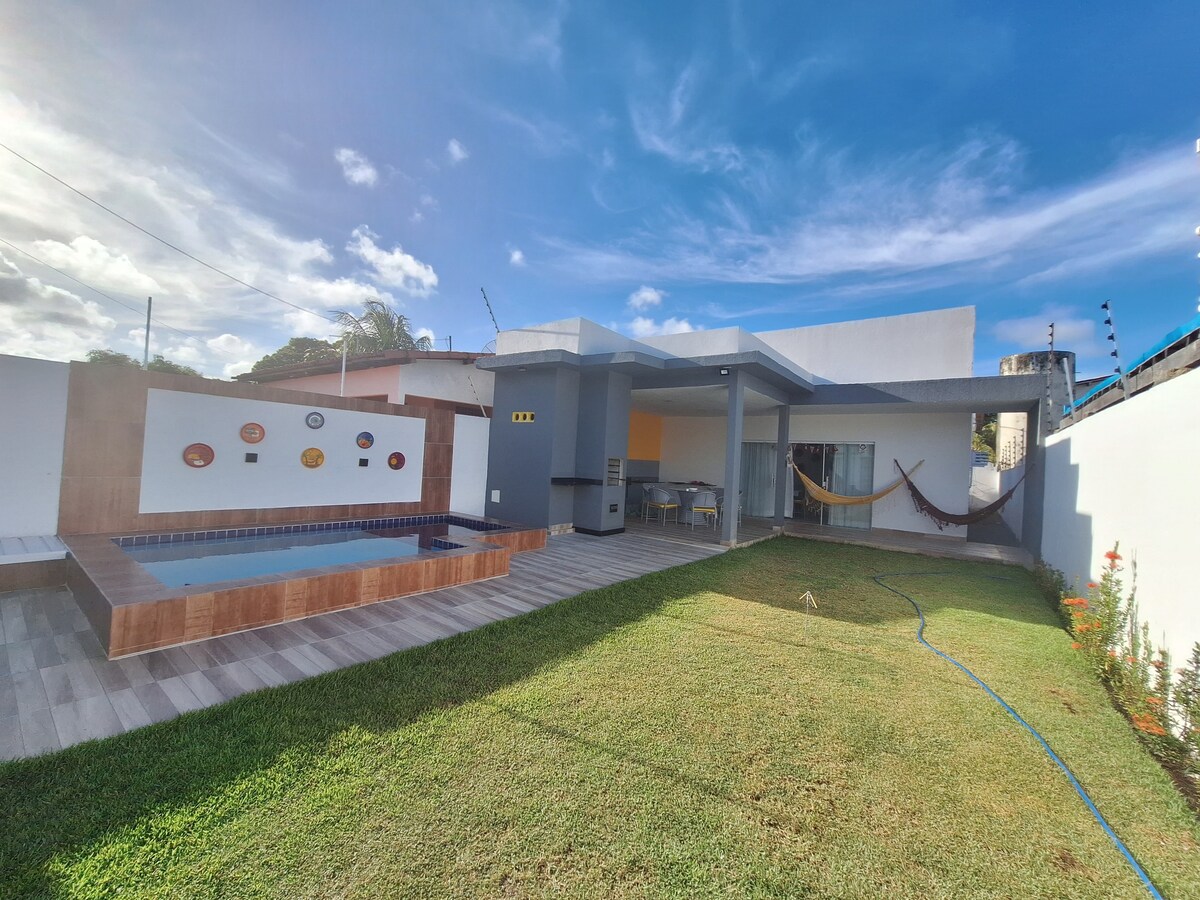 Bring the whole family to this great place with plenty of room to have fun and discover paradise House description: 4 BEDROOMS, 1 OF WHICH IS A SUITE 4 AIR-CONDITIONED BEDROOMS 3 BATHROOMS, 2 OF WHICH ARE GENERAL POOL WITH WATERFALL AND HYDRO COVERED BARBECUE GRILL HOUSE WITH WI-FI AND SMART TV FULLY FURNISHED HOUSE FURNISHED KITCHEN HOUSE HAS EXTRA MATTRESSES EACH ROOM HAS AN EXTRA FAN 350 METERS FROM THE BEACH ANY QUESTIONS? JUST ASK WE HAVE INSTAGRAM @temporadanoscarneiros [season at Carneiros]
