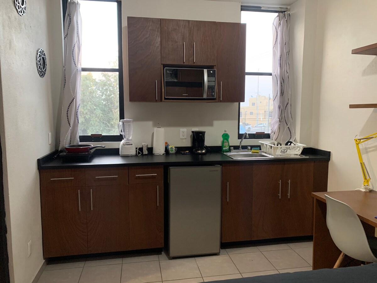 New apartment "Arenal 3", with everything you need to enjoy an excellent stay. Ideal for work, rest, or long stays. Located 3 minutes from Tampico Airport in the Arboleda neighborhood. Adhering to all new cleaning protocols, we leave a longer time between reservations to comply with all cleaning standards. It has a double bed, mini-split, Smart TV, kitchenette, minibar and everything you need for cooking. Book now!