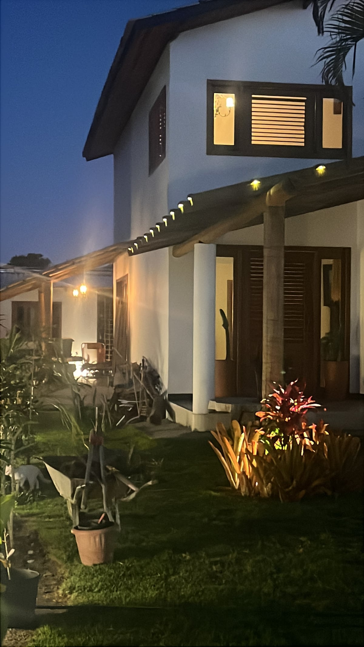Uma acomodação aconchegante com um jardim amplo, repleto de plantas diversas. Pela manhã os hóspedes são despertados pelo canto dos pássaros. Uma piscina convidativa, ideal para um mergulho refrescante. O local esta próximo ao mar, facilitando o acesso a praia. Na varanda a rede esta disponível para um descanso em um ambiente tranquilo e confortável.