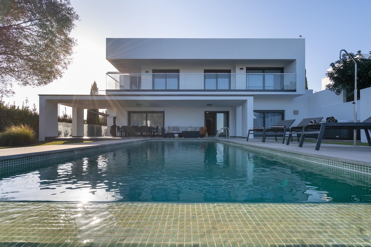 Located between Marbella and Sotogrande, Villa Blue Bay is a spacious and elegant house on the Costa del Sol, ideal for a stay as a couple, with family or with friends. Its infinity pool with sea view offers an exceptional and unforgettable panorama. The villa is situated in a quiet and secure environment, only 10 minutes’ walk from the beaches via a safe pedestrian bridge.
