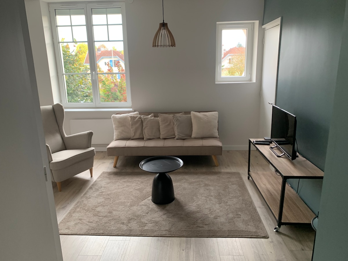 Voici le petit frère de l’appartement « bienvenue chez vous! » après de long mois de travaux il est enfin disponible ! Appartement en rez de chaussée avec entrée indépendante. Vous y trouverez tout le confort moderne, cuisine équipée, internet, tv 138 cm dans le salon, machine à laver, écran cinéma de 200 cm avec Netflix, Amazon prime dans la chambre, un espace extérieur privé (en cours d’aménagement), une place de parking le tout à 15 min À PIEDS du plein centre ville ! WIFI