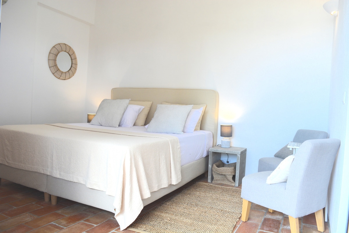 A soulful artist’s suite on a peaceful Algarve hilltop. Tucked away in a lovingly restored artist’s home, our spacious guest suite offers a unique stay full of charm, creativity, and calm. Surrounded by nature, sculptures, and birdsong, it’s the perfect escape to unwind, reflect, or reconnect. You'll have your own private suite with all essentials — and if you feel inspired, our art studio and clay kiln are yours to explore.