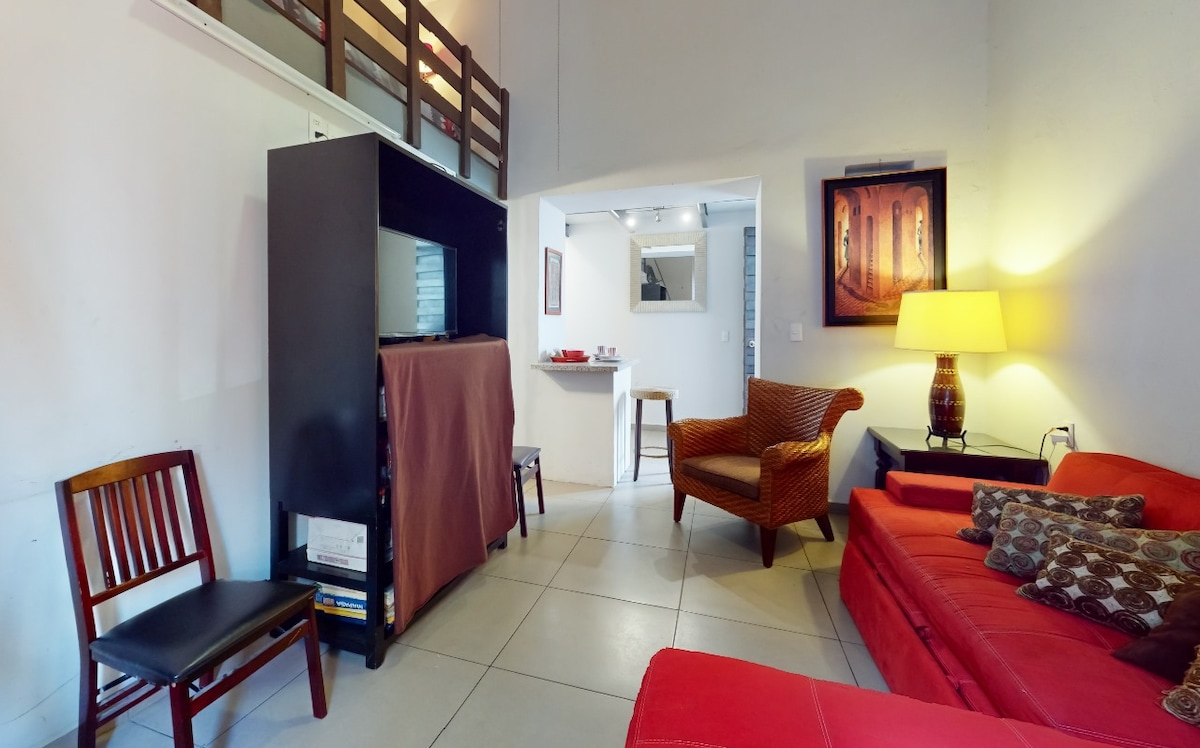 Premiere and enjoy a colonial loft in "Casa Ilustre", one block from the Cathedral of Guadalajara and two blocks from the Teatro Degollado and the Plaza Tapatia. Perfect for couples or solo travelers, with living room, dining room, kitchenette, bedroom with KS bed, KS sofa bed, WIFI, Smart TV, and private bathroom. Relax on the rooftop with a pool and enjoy the beautiful view of the Cathedral. Close to museums, restaurants, cafes, galleries, squares, and public parking behind the house