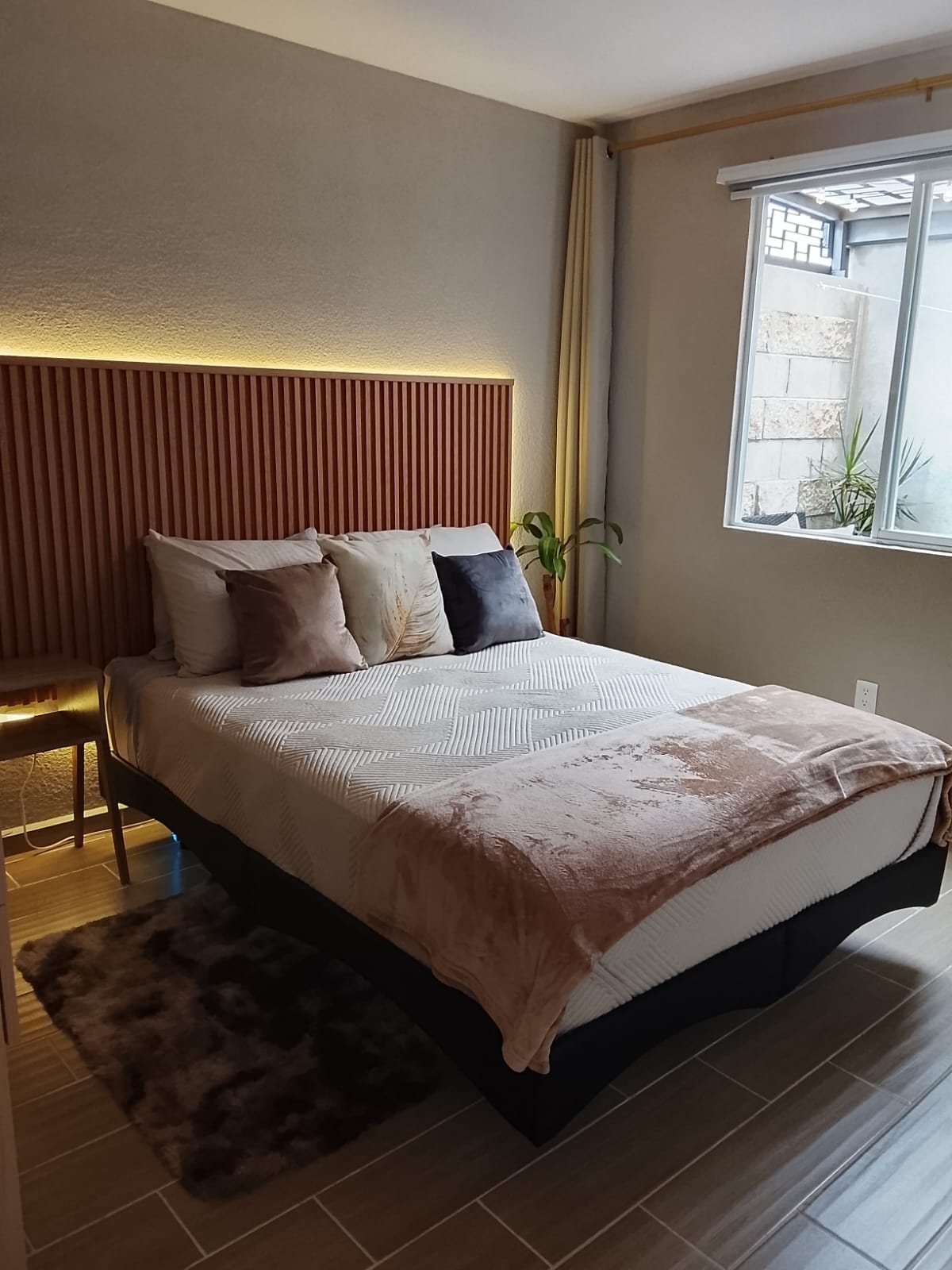 This unique home has plenty of space for you to enjoy with your loved ones. It covers all your needs, Mexico-Pachuca highway, easy access to get to CDMX. Enjoy a cozy and modern space in the Municipality of Ojo de Agua, just minutes from Felipe Ángeles International Airport (AIFA) and Tecamac. This furnished apartment is perfect for 4 people, you can also bring a pet.