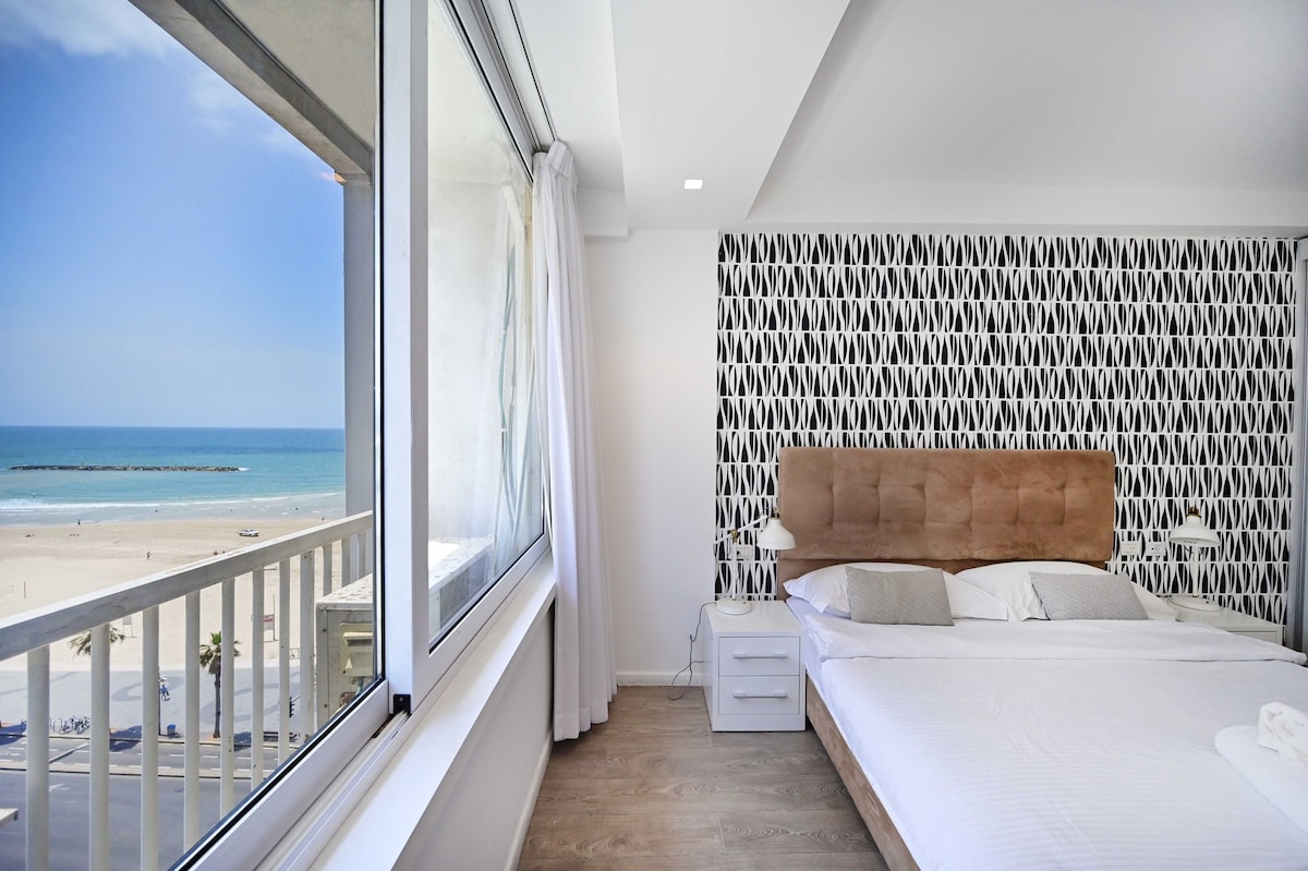 Experience luxury in our sea-view apartment. This stylish unit features 2 bedrooms (king-size bed, upgraded sofa bed), 2 bathrooms (shower, bath), and a fully equipped kitchen (coffee/juice machines, microwave, oven, fridge, washer, dryer, iron). Enjoy private entrance, 24/7 concierge, elevators, plus hotel amenities (pool, restaurant, room service). With A/C, 2 TVs with Apple TV, and a prime beachside location near Carmel Market and city center, it's your perfect getaway.