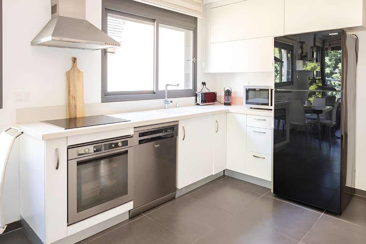 Safe-room Our Luxury Oasis in the heart of Tel Aviv, a minute's walk from Gordon & Hilton beaches. This high-end apartment offers modern elegance and comfort. Enjoy the birds chirping from the balcony, or unwind in the chic living area after a day at the beach. With a Modern layout, top-notch amenities, and stylish decor, it's your perfect urban retreat. Located steps away from trendy boutiques, gourmet restaurants, and cultural landmarks. Experience the best of Tel Aviv right at your doorstep.