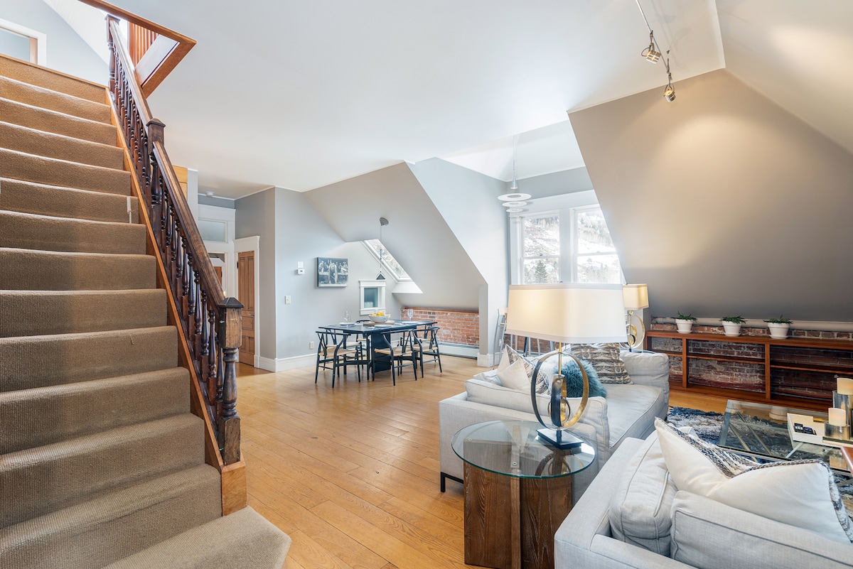 Sunny second floor (penthouse) one-bedroom historic main street condo with deck just steps away from restaurants, cafés, shops, skiing, hiking, and much more! This turn-of-the-century condo offers a comfortable and stylish retreat, ideal for couples looking to explore the charm of downtown Telluride and its many activities. As long-time locals of over 30 years who have had to relocate due to family health issues, we are excited to share our condo with fellow travelers who love Telluride!!
