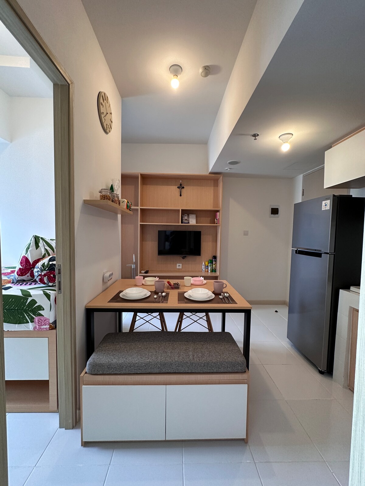 Newly furnish cozy studio @PIK 2 Apartment connected to Lifestyle Mall In this new trending area PIK 2, you can easily find various of food and entertainment About the unit : - 1 Queen Bed 160 cm - Kitchen Set ( with electric stove & mini refrigrator ) - SMART TV for Netflix - Water Heater - Clean towels *get special price if book more than 3nights! chat us This unit is well maintenanced, you'll feel comfort when you stay here *Pool and gym not included