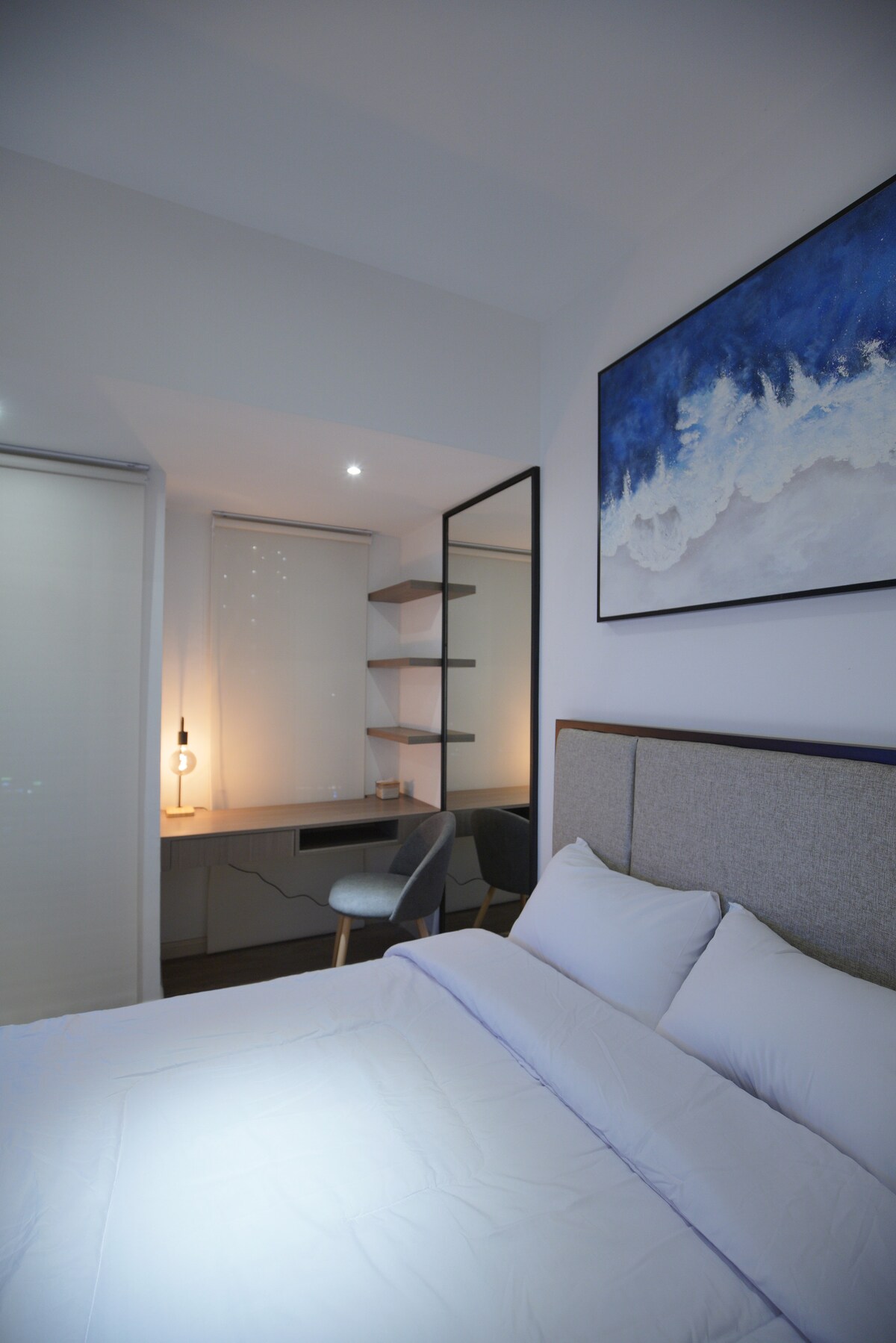 Experience a cozy minimalist escape at Tokyo Riverside PIK 2, where modern design meets comfort. Perfect for solo travelers or couples, this stylish studio offers a queen bed, kitchen, smart TV, and Wi-Fi — ideal for work or rest. Just a 1-minute walk to an open-air mall, supermarket, and 90+ cafés and restaurants, with Aloha Pantai Pasir Putih, Pantjoran PIK, NICE PIK 2, and more nearby. Clean, comfy, and convenient — your perfect stay near the airport.