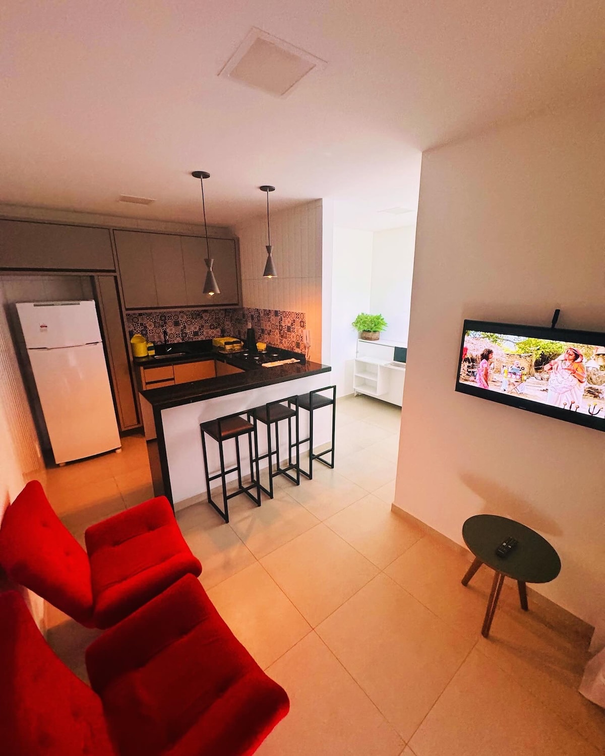 MOBILHADO APARTMENT: LIVING ROOM WITH FULL KITCHEN: STOVE AND GAS, REFRIGERATOR, WALL CLOSET, MICROWAVE, SANDWICH MAKER; BEDROOM WITH AIR CONDITIONING, DOUBLE BED, TV, DRESSER, TABLE AND CHAIR. GREAT LOCATION, IN THE CITY CENTER, CLOSE TO SUPERMECED, DELICATESSEM, BAKERY, BBQ, PIZZERIA, PIZZERIA, PHARMACY, GYM, BEAUTY SALON, SCHOOL, CHURCH, GAS STATION, GAS STATION, MEDICAL CLINIC, PHYSIOTHERAPY AND DENTIST, BANKS, CLOTHING AUGUEL STORE, ICE CREAM SHOP. HOST READY TO SERVE THEM