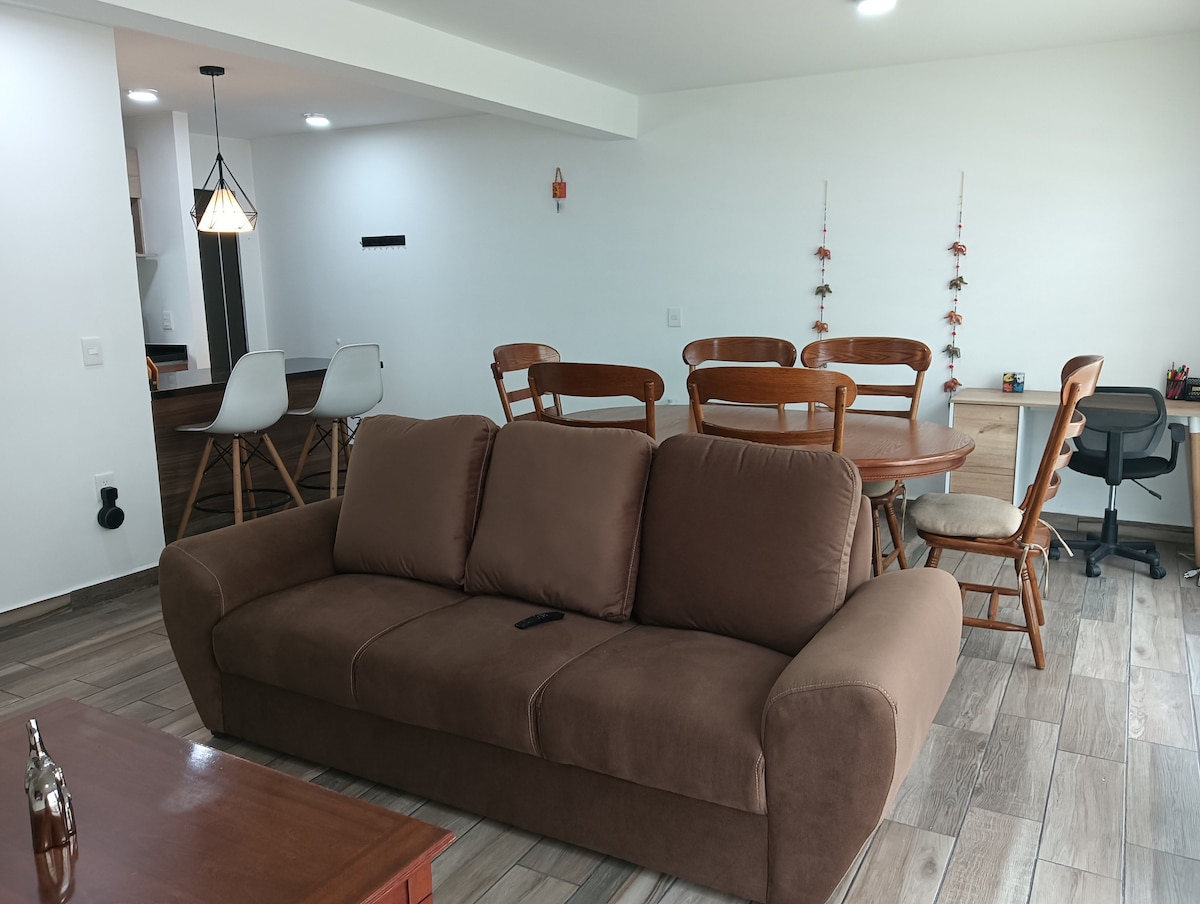 Welcome to the Dream apartment! Comfortable 60 M2 space, with living room with sofa bed, Smart TV (Netflix-YouTube), Wifi, kitchen with dining room, refrigerator, stove, microwave oven, filter coffee maker and capsules, kitchen utensils. Two nice bedrooms (double and double) Autonomous access. Carved parking. * ATTRACTIVE RATE MORE THAN 5 NIGHTS*BILLING* Located 500 meters from Amazon and a 7-minute drive from the Tepotzotlán tourist center, Edo de Méx.