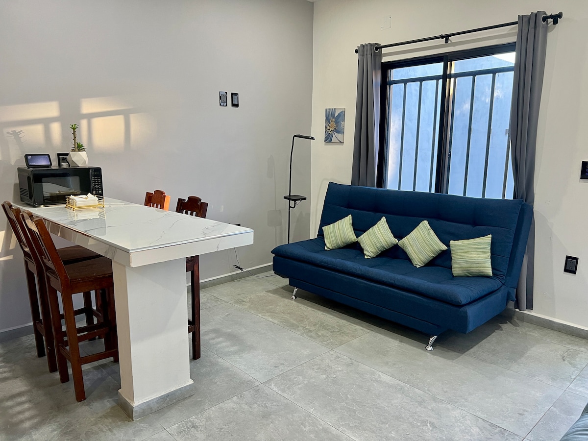 Welcome to this cozy apartment located in Tequila, Jalisco, a place where tranquility and security combine to offer you a unique experience. Just an 8-minute drive from the historic center of Tequila. Situated in a privileged location, a few meters from the José Cuervo Express train station, this apartment is perfect for those who want to explore the beauty of Tequila and its surroundings.