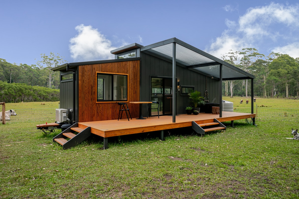 Reconnect with nature. Backing onto the state forest, this unique tiny house stay gives you the best of both worlds. The little things is situated on 3 acres overlooking a duck filled dam, kangaroos and native birds, yet just a stones throw away from town and local beaches. We are FULLY OFF GRID & ECO FRIENDLY ❤️ Complimentary Breakfast hamper enjoyed on the verandah, movie projector for rainy days & fire tub bath under the stars at night 7 VELUX skylights and King bed….. enjoy THE LITTLE THINGS