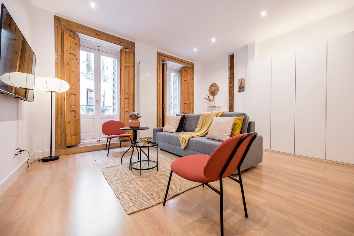 Destaca por su ubicación inmejorable en pleno centro de Madrid, en uno de los barrios más de moda. Ideal para estancias temporales, ofrece un diseño moderno y elegante. La luz natural inunda el piso, creando un ambiente cálido y acogedor, perfecto para relajarse o trabajar. Con un dormitorio cómodo, sofá cama amplio, una cocina completamente equipada y un área de trabajo único, hace de este piso un espacio perfecto para sumergirse en la vida madrileña mientras disfrutas de todas las comodidades.
