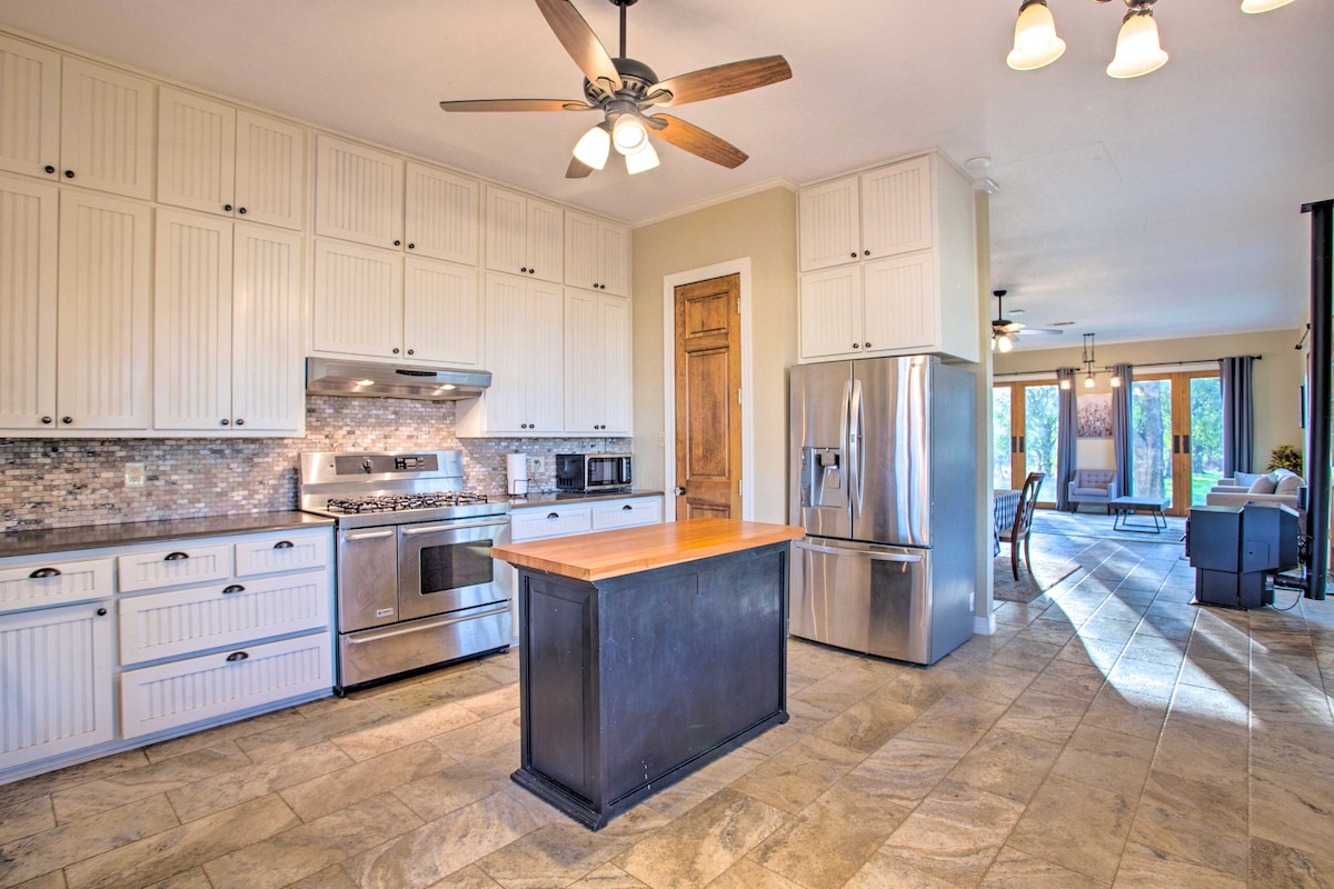 Leave your worries behind and head to this 3-bedroom, 2-bathroom vacation rental home on a 105-acre property in Gainesville. This idyllic abode offers a spacious interior, a kitchen for preparing home-cooked meals, ample outdoor entertainment space with a fire pit and grill, and more to provide you with the peaceful getaway you’ve been hoping for. During your stay, try your luck at the WinStar World Casino, or take your horses out for a trail ride at Ray Roberts Lake State Park Isle du Bois!
