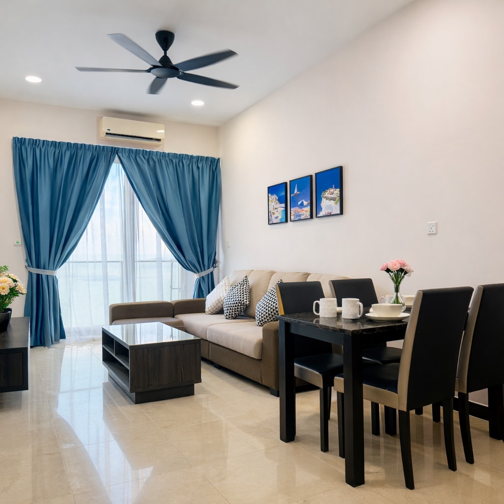 Welcome to our centrally located Airbnb, situated in the heart of the city. This dual key designed accommodation is perfect for large families or two families looking to stay together. From the vantage point of the 35th floor, you can enjoy breathtaking views of Malacca, especially captivating during the evening hours. This unit features a dual key room configuration.