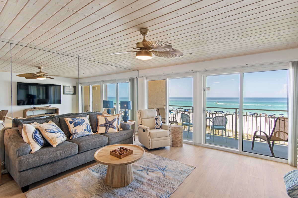 Welcome to Seas The Day, your dream beachfront getaway! Located on the 2nd floor of the exclusive Destin Beach Club, our newly remodeled condo offers stunning Gulf views, modern comforts, and a relaxing coastal vibe. This beautifully updated space features a brand-new kitchen, stylish new bathroom vanities, and a luxurious custom-tiled shower in the primary bathroom. Unwind in the living room with an electric fireplace set in a serene coastal design, perfect for cozy evenings!