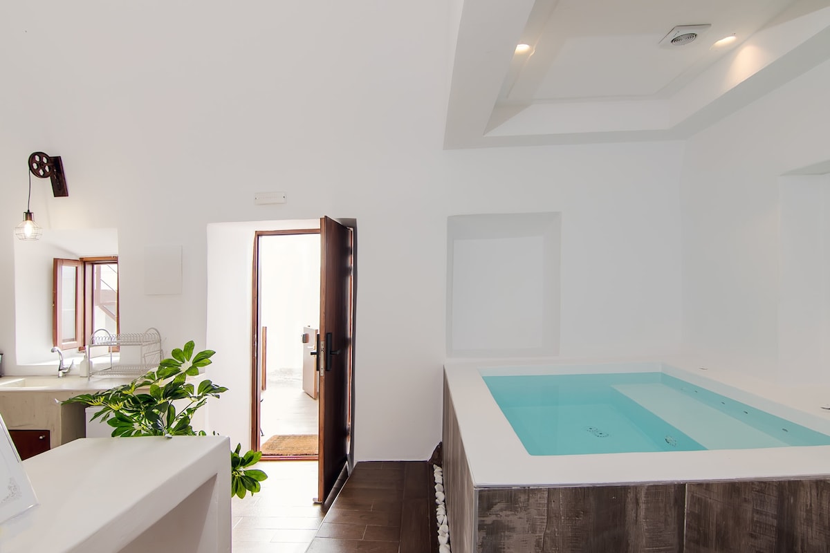 A suite with a rooftop heated pool & indoor hot tub 1.5 km from Caldera, blending uxury with meticulous detail, is welcoming you! The rooftop is the ideal place to enjoy your favorite drink, near the hot tub, gazing upon the magnificent sunsets of the Aegean. Immerse yourself in the romantically magical atmosphere of golden beaches and clear blue skies. Nearby, discover a plethora of restaurants, traditional taverns, and bars. Free WiFi & parking!