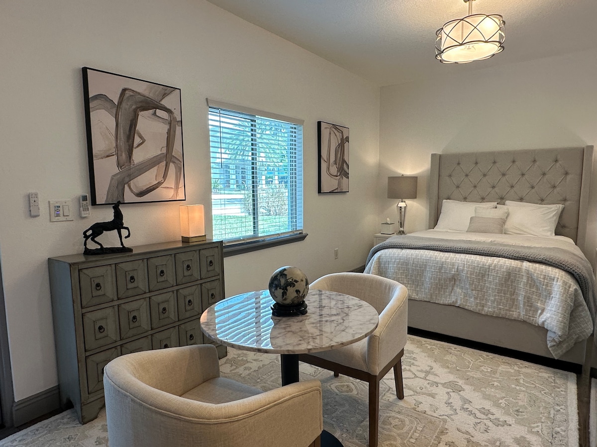 Private, artistically inspired detached guest suite with private entrance & easy parking. Only 20-30 minutes from the theme parks. Less than 2.5 miles from the Kia Center, Camping World Stadium, Inter&Co Soccer Stadium, and Dr. Phillips Center 1 mile The suite is near the major highways and toll roads making travel a breeze! Safe, quiet, beautiful historic neighborhood including many of the the lakes downtown Orlando is known for. You'll LOVE your stay, check out our reviews!