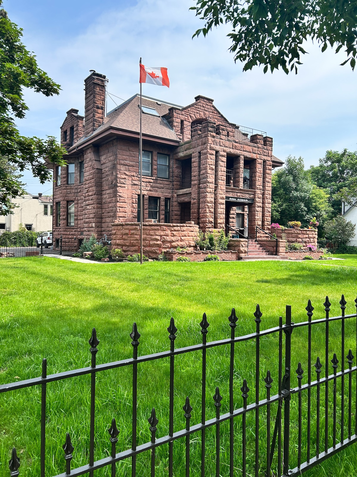 This newly renovated mansion boasts a bright and spacious one-bedroom suite, on the 2nd floor (only stairs), complete with a queen sized bed and four-piece bath. This building was built in 1911 for William Ross and his family. Ross was one of the earliest developers in the community of Fort William. This two and a half storey building was constructed of red sandstone providing front and back door access. On the 2nd floor there is a shared patio. Coin operated laundry facility in the basement.