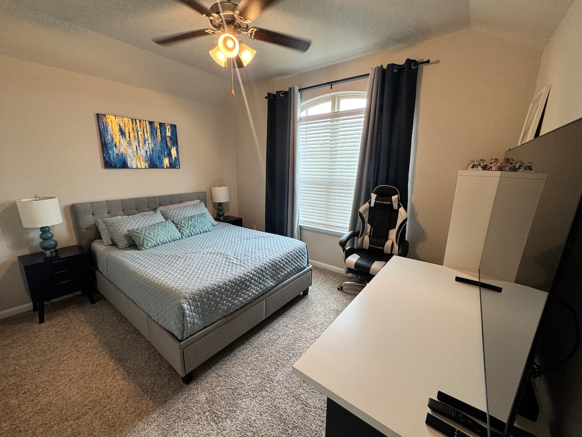Welcome to my home! This cozy and inviting spare room is the perfect retreat, located just 15 minutes from the airport. Designed for comfort, it features a plush bed, ample storage, and a tranquil vibe to unwind after a day of exploring. Enjoy easy access to downtown. Whether you’re here for work or play, you’ll have everything you need from high-speed Wi-Fi to a smart TV for a relaxing night in. Come experience Houston like a local with the comfort and convenience you deserve!