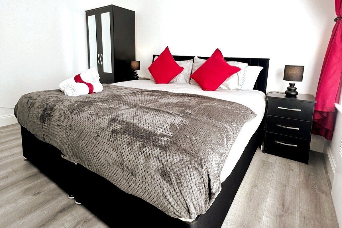 Welcome to our modern designed and fully equipped 2-bed apartment in the heart of Grays Thurrock! (aprox 30mins to central London). Our apartment is equipped with all the amenities you need to make your stay comfortable and enjoyable. With a master and a double bedrooms, a living area, and a fully equipped kitchen. Our attention to detail and thoughtful design make our apartment special. We can't wait for you to experience it for yourself!