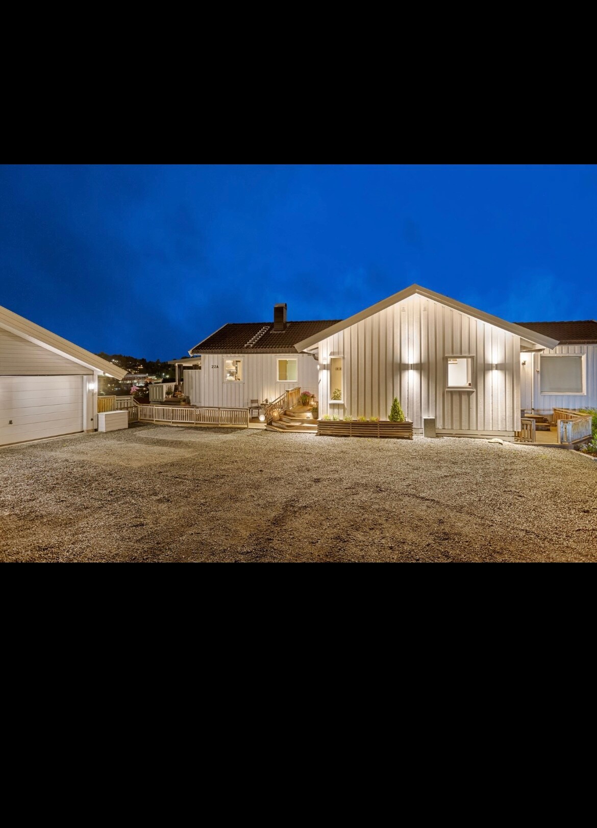 Modern and spacious cottage of about 140 sqm idyllically located near the beach at Selbusjøen, only half an hour's drive from Trondheim city center. Spacious with all amenities and well equipped kitchen. Two bathrooms, one of which has a combined washing machine and dryer. Two bedrooms with beds for adults and a children's room with bed for older children. In addition, there is a basement living room with a double sofa bed with two pull-out beds. TV on all floors, PS5 in the basement.
