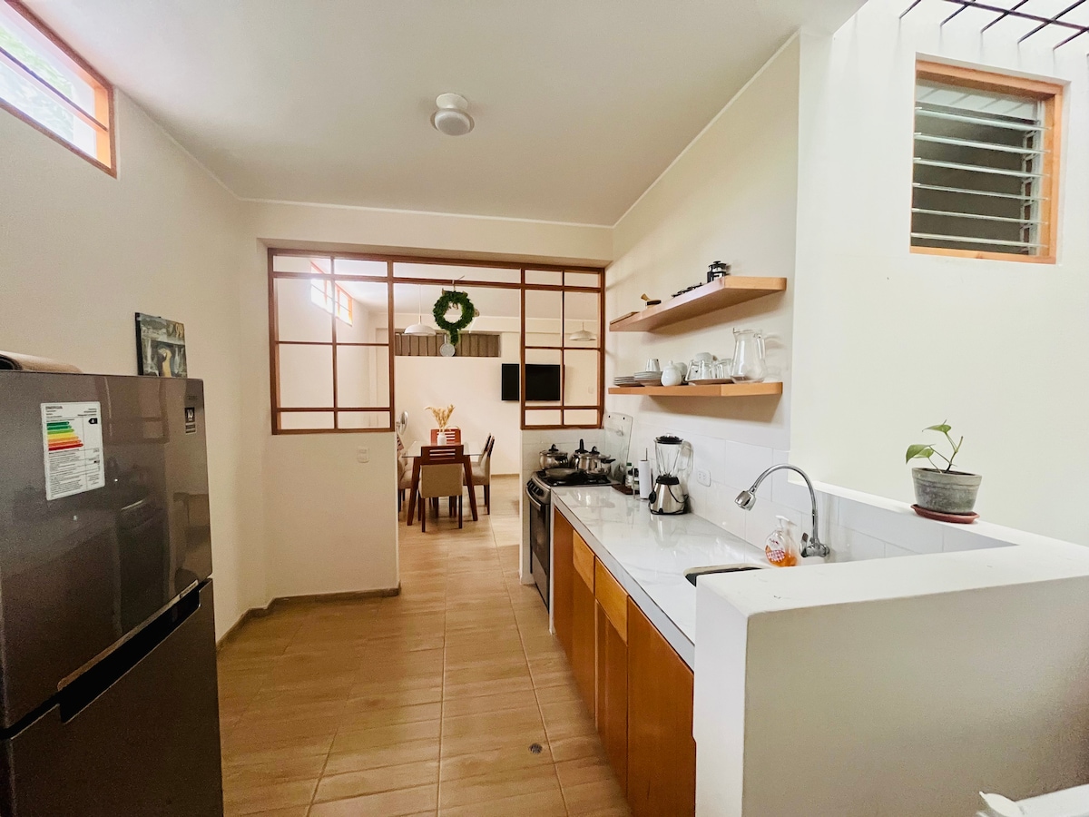 Cozy, spacious and renovated accommodation, ideal for couples or small families, it has all the amenities to make your stay very comfortable, high-speed WiFi so you can work, it is located near the city's main square, travel and tourism agency, as well as banks and places of typical food and recreation for children. You can leave your vehicle outside the house at no cost. We provide tourist information.
