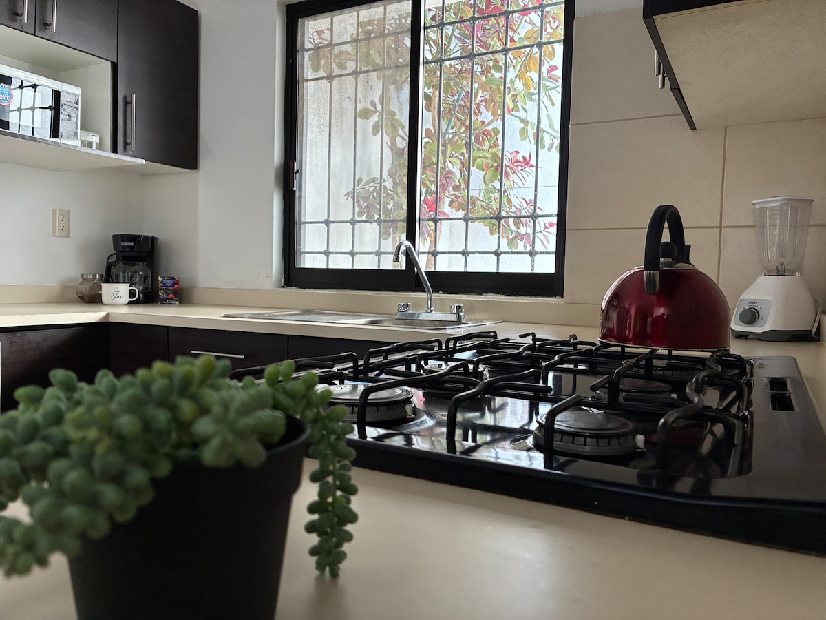 Enjoy the charm of Puebla from our home in the El Carmen neighborhood. This modern condo is quiet, safe, and perfectly located for exploring Puebla’s historic center on foot while enjoying all the comforts of home. You’ll be a short walk away from restaurants, cafes, museums, and popular Spanish language schools. Ideal for long-term stays and remote workers, with high-speed internet, a dedicated workspace, and a well-equipped kitchen.