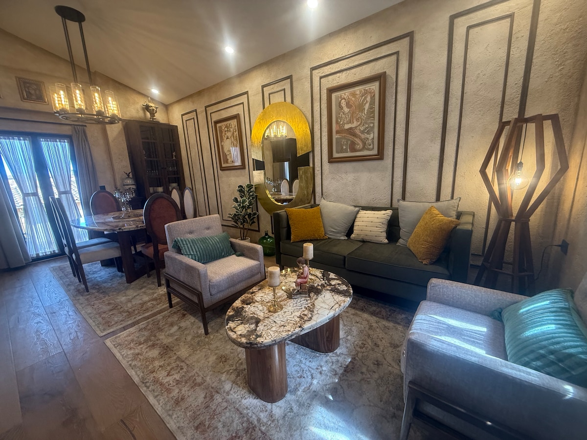 Beautiful apartment ideal for 8 and up to 10 people in the heart of Val'Quirico Zócalo, enjoy it as a couple, family or with friends; 2 bedrooms (Bedroom 1 with King Size and Sofa King, Bedroom 2 with 2 Double Beds, 2 full bathrooms and 2 terraces with wonderful views, 1 Double Sofa Bed in the living room, living room, kitchen and bar; the best location according to the guests and us, surrounded by restaurants and overlooking the zócalo and the Casa de los Abuelos (Construction protected by the INA), you will love it!