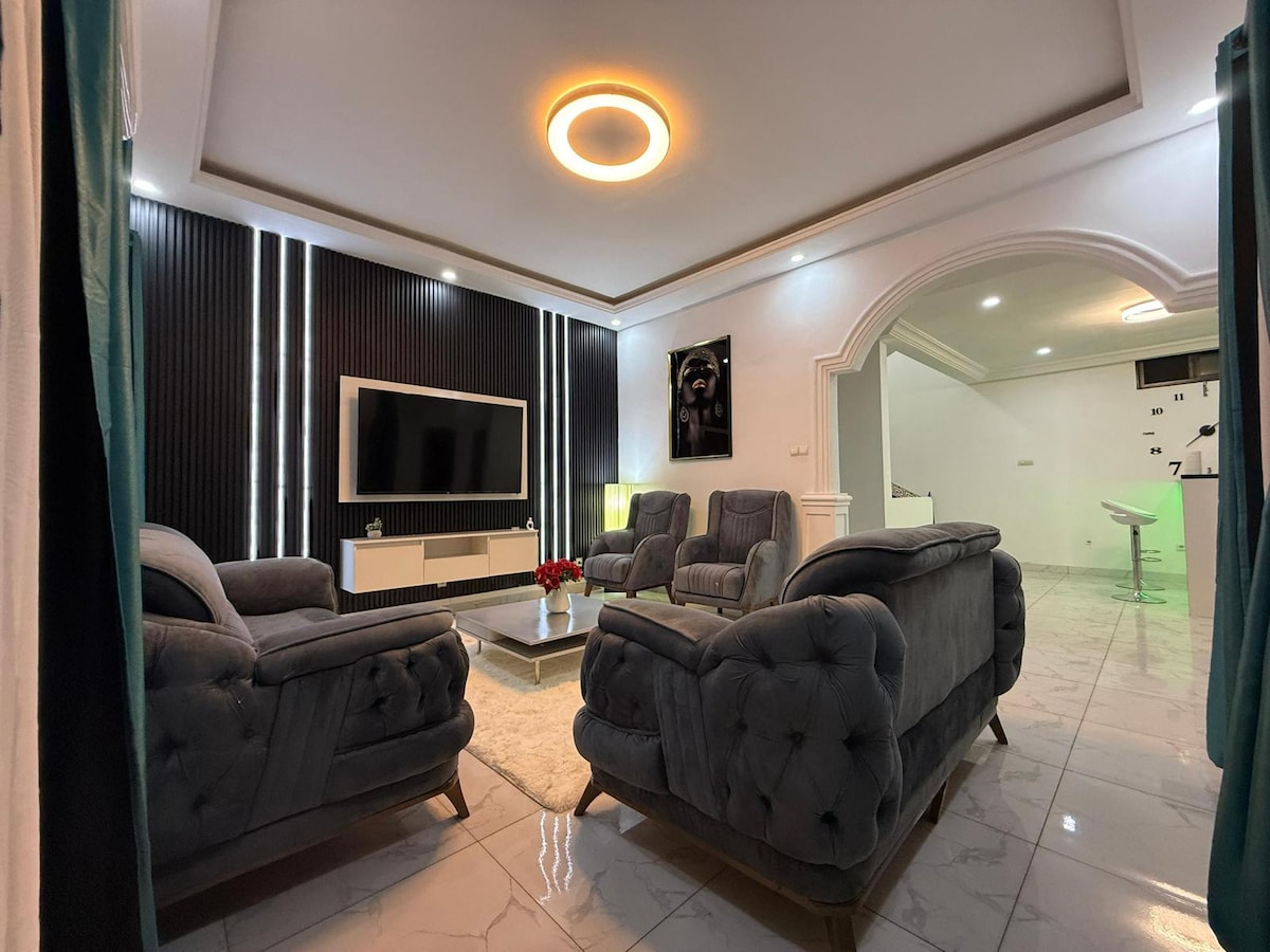 Enjoy a relaxing stay in our spacious 4-bedroom beachside villa located in the peaceful neighborhood of Baguida, just minutes from Lomé city center. * 4 Luxurious Bedrooms – Perfect for families, groups of friends, or stylish getaways. * Modern Designer Bathrooms – refresh and unwind after a day of exploring. * Fully Equipped Kitchen – Prepare meals with ease in a sleek and functional kitchen. * Great Location – Close to restaurants, malls, the city center, and the international airport.