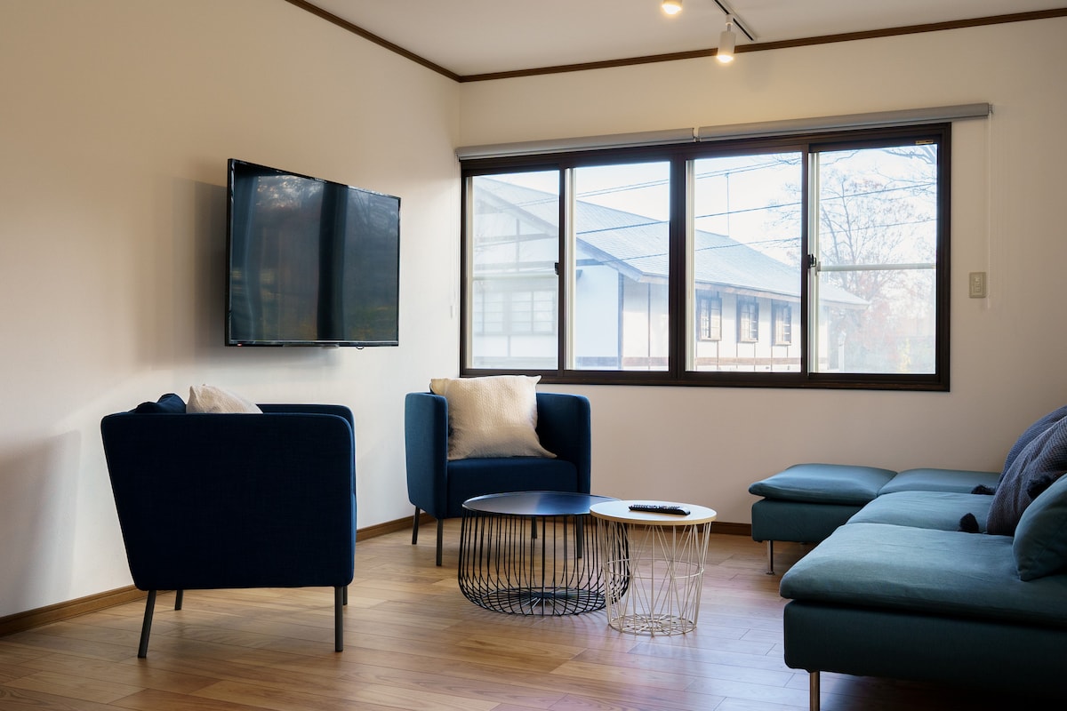 A private villa with a view of Mt. Tanigawa, a symbol of ●Minakami. ●Free BBQ & sauna There are many ski resorts● nearby - About 12 minutes by car to Norun Minakami Ski Resort - 16 minutes by car to White Valley Minakami - 23-minute drive to Tanigawadake Yohjo Ski Resort - 31-minute drive to Minakami Hodaigi Ski Resort Tambara Ski Park is 34 minutes by car Please relax with● your family, friends, and dog. You can enjoy the view from the⚫ living room, bedroom, wood deck, and bathroom. It is also a base for● hot springs, fruit picking, mountain climbing, cycling, and rafting [About the facility] - Sleeps up to 6 - 4 single beds and 1 sofa bed (double size) - Main house (80.14 sqm) + annex (10 sqm, used as a rest area) + wooden deck.The floor area is 581 ㎡ Parking for 5 vehicles (free) Access - 5-minute drive from the floating interchange - 10 minutes by car from Jomo Kogen Station on the Joetsu Shinkansen (65 minutes from Tokyo Station to Jomo Kogen Station, car rental company in front of the station) Nearby Facilities - Large supermarket is a 10-minute drive - 7-Eleven is 4 minutes by car (12 minutes on foot)