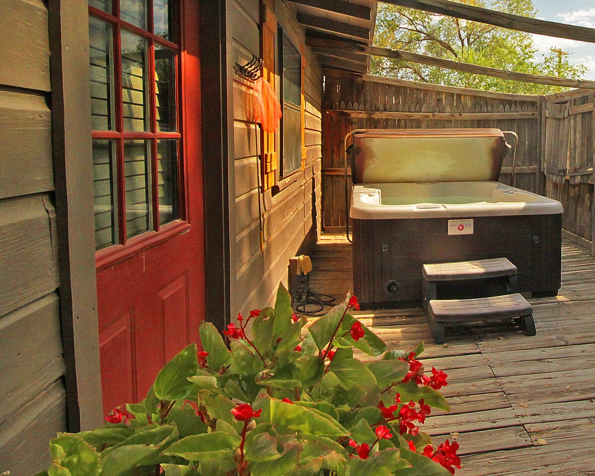 Private Hot Tub! Historic Starlight Canyon B&B The Mesquite Cabin, private cabin, separate entrance. Convenient to PaloDuro, WTAMU, Amarillo & Canyon, comfortable and cozy , queen bed, a wood burning fireplace, a large walk-in cave shower, mini-kitchen with microwave and refrigerator, relax in your private hot tub on the private patio, beautiful property on 6 acres down in the canyon just up-stream from our state park. You’ll never want to leave! Drivers License is required to stay.