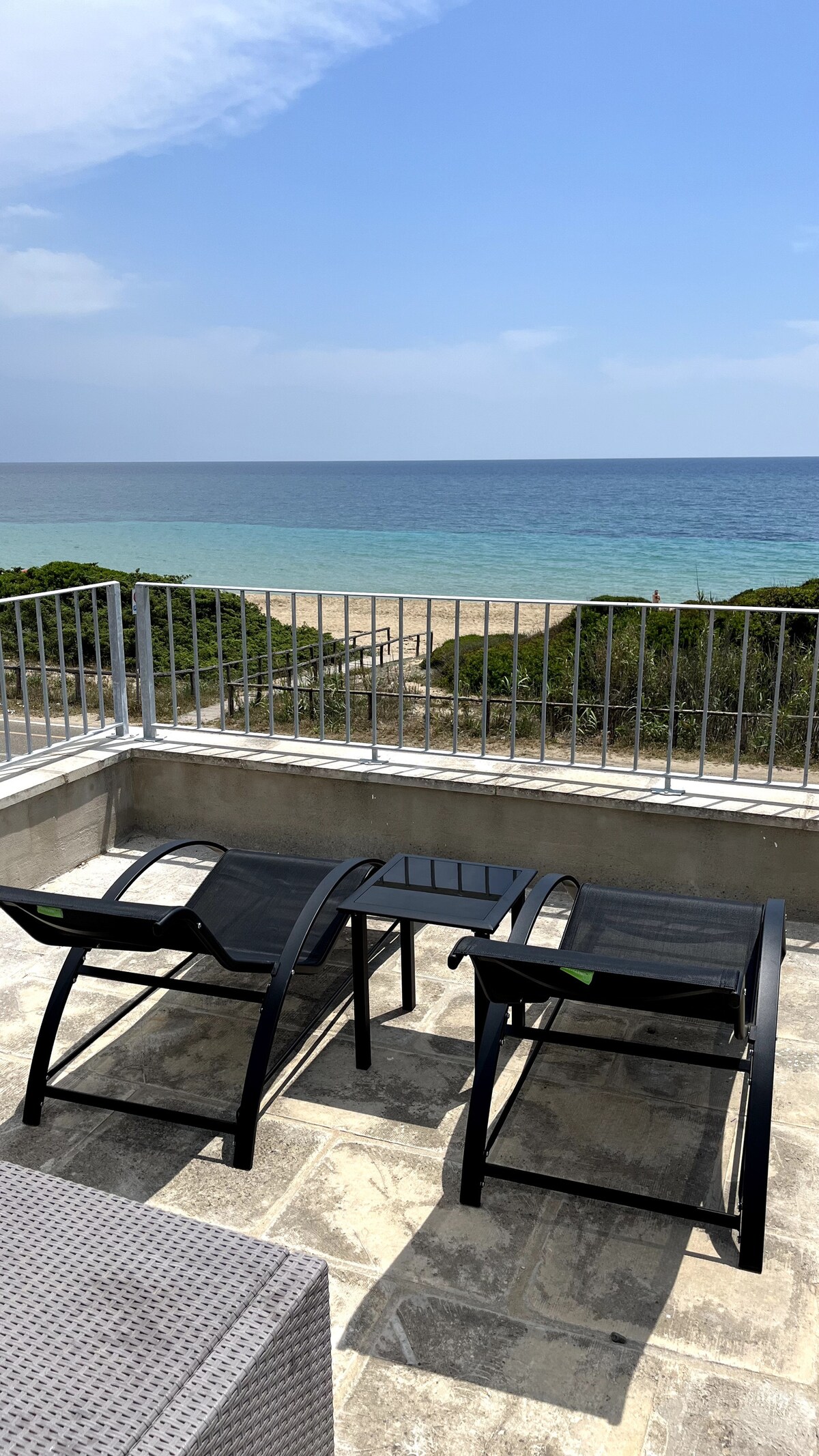 Recently renovated seafront apartment with breathtaking sea views and romantic sunsets. Located between two charming coastal villages linked by a beautiful seaside walk, in one of the most sought-after areas of Salento. Cafés, restaurants, beach, local market, and a pharmacy are all within short walking distance. A scenic coastal road runs between the house and the sea, offering easy access to the waterfront. Perfect for guests who want to explore Salento while waking up to a sea view.