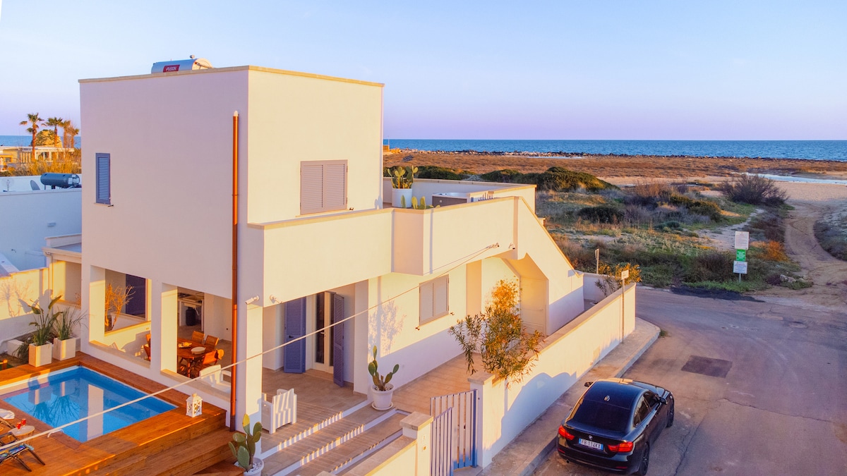 Casina Le Muse is a villa with a swimming pool set in a beautiful natural setting, the evocative landscape of Pescoluse. The villa offers enchanting sea views from every single room. Casina Le Muse is located just 500 meters from the beaches of Pescoluse and the promenade of Torre Vado. The villa features local architectural elements combined with local material elements, designer furniture with modern technology and comforts. Pets are not allowed
