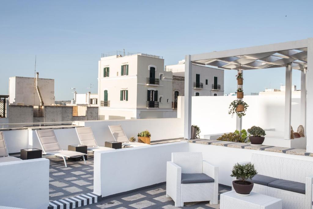 Located in the historic center of Gallipoli, 5 minutes walking from the seafront, Dimora delle Terrazze is a beautifully renovated flat inside a noble palace, with two equipped panoramic terraces overlooking the sea. Its wide and bright rooms, with high arched ceilings and colored antique floors, are furnished with design furnitures and local antique pieces. It has a master bedroom, a living room area with a double wooden daybed, two bathrooms, a kitchen and an outdoor luxurious shower.