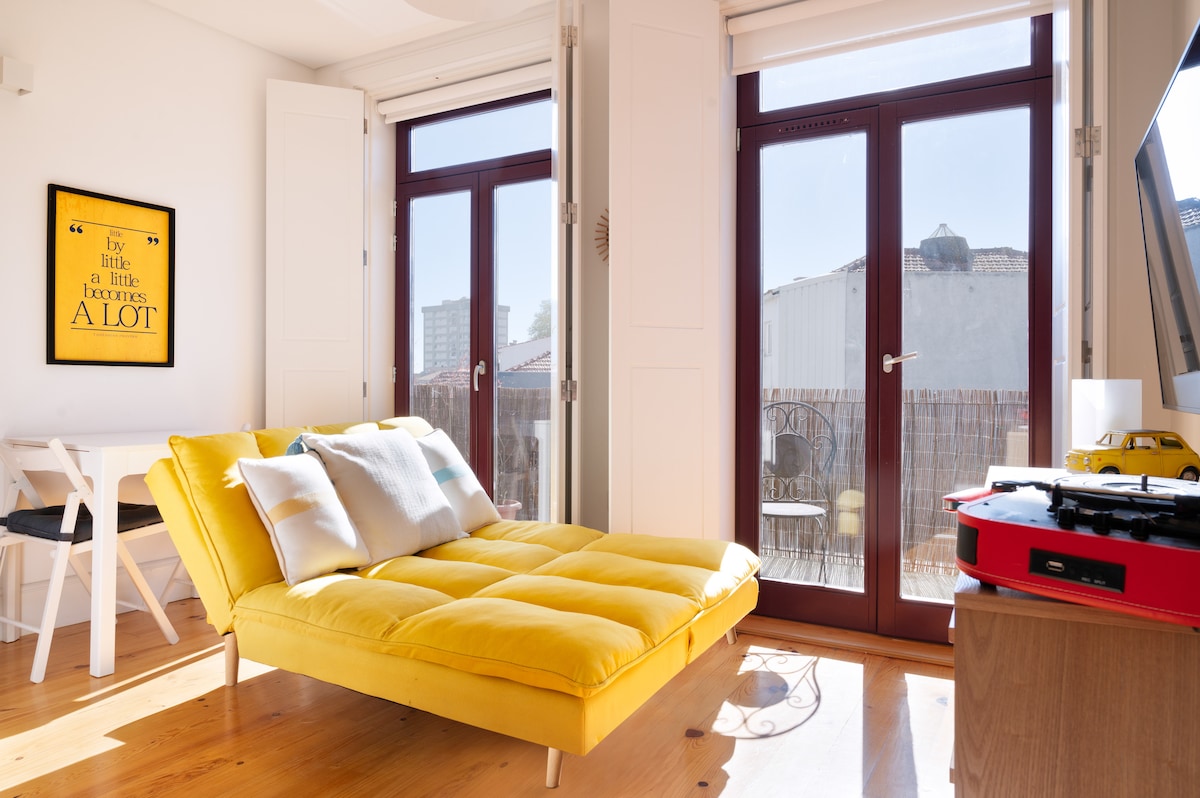 Located in the heart of the city, its sunny orientation with a lovely balcony over the condo's private backyard makes it the perfect spot for enthusiastic explorers who enjoy chillout sunsets and quiet nights. Next to Carolina Michaelis metro station (two stations from Trindade), everything you might need is available at walking distance, including a supermarket, restaurants, and pharmacy.
