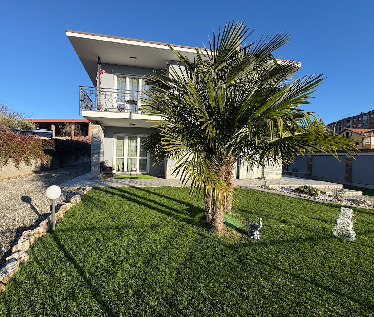 The well-furnished apartment is on the 1st floor, without elevator, of an old renovated villa in the village of Caselette, 12 km from Turin and the Fermi metro station, 4 km from the Alpignano station. A shopping center is 300 meters away. On sunny days, you can enjoy the panoramic terrace, garden, swimming pool and hot tub. Trekking/mountain biking on Mount Musinè. Juventus Stadium 15 km away Reggia di Venaria is 18 km away Castello di Rivoli 8 km away Lakes of Avigliana 14 km Bardonecchia 76 km