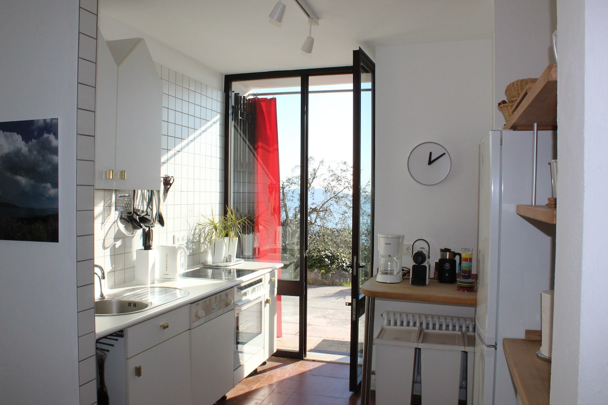 One bedroom, two bathrooms flat, fully equipped, provided with a double bed and two sofa beds, it accommodates up to six people. Located on a quiet, traffic-and-noise-safe street on the top of the hill, it offers a stunning view of the lake. Beaches are 10 minute driving distance. The flat is part of a three floor villa formed by 4 flats in total. Three flats are on Airbnb and the remaining one is occasionally occupied by my family. CIR 017187-CNI-00150 City tax fee included in the price