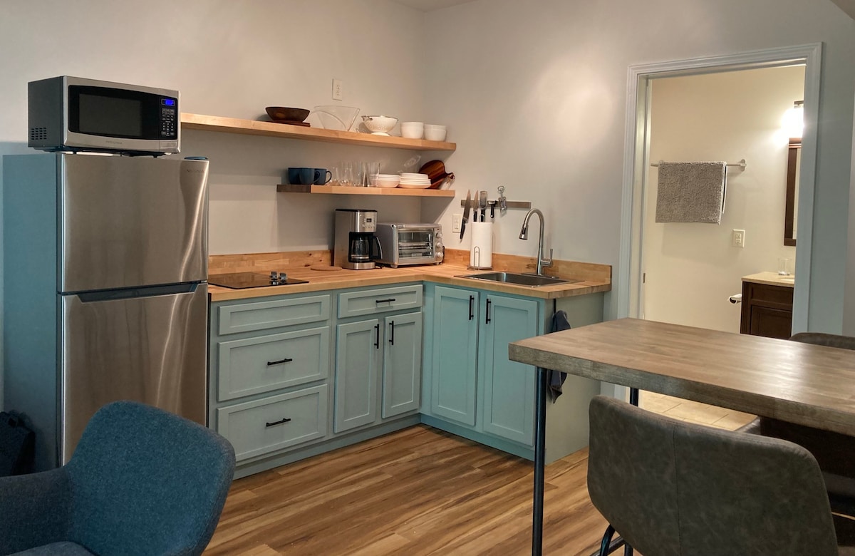 NO CLEANING FEE Newly constructed private guest suite conveniently located in the heart of Cedar Mountain. 8 miles from Pretty Place Chapel. Queen bed, tiled shower, kitchenette that includes convection oven, sink, microwave, small refrigerator, coffee pot, tea kettle, small table and chairs, private patio and fire pit(advanced notice required & bring your own wood please). Room is very well stocked with coffee, snacks & toiletries. If you’re planning to visit Pretty Place- check website first