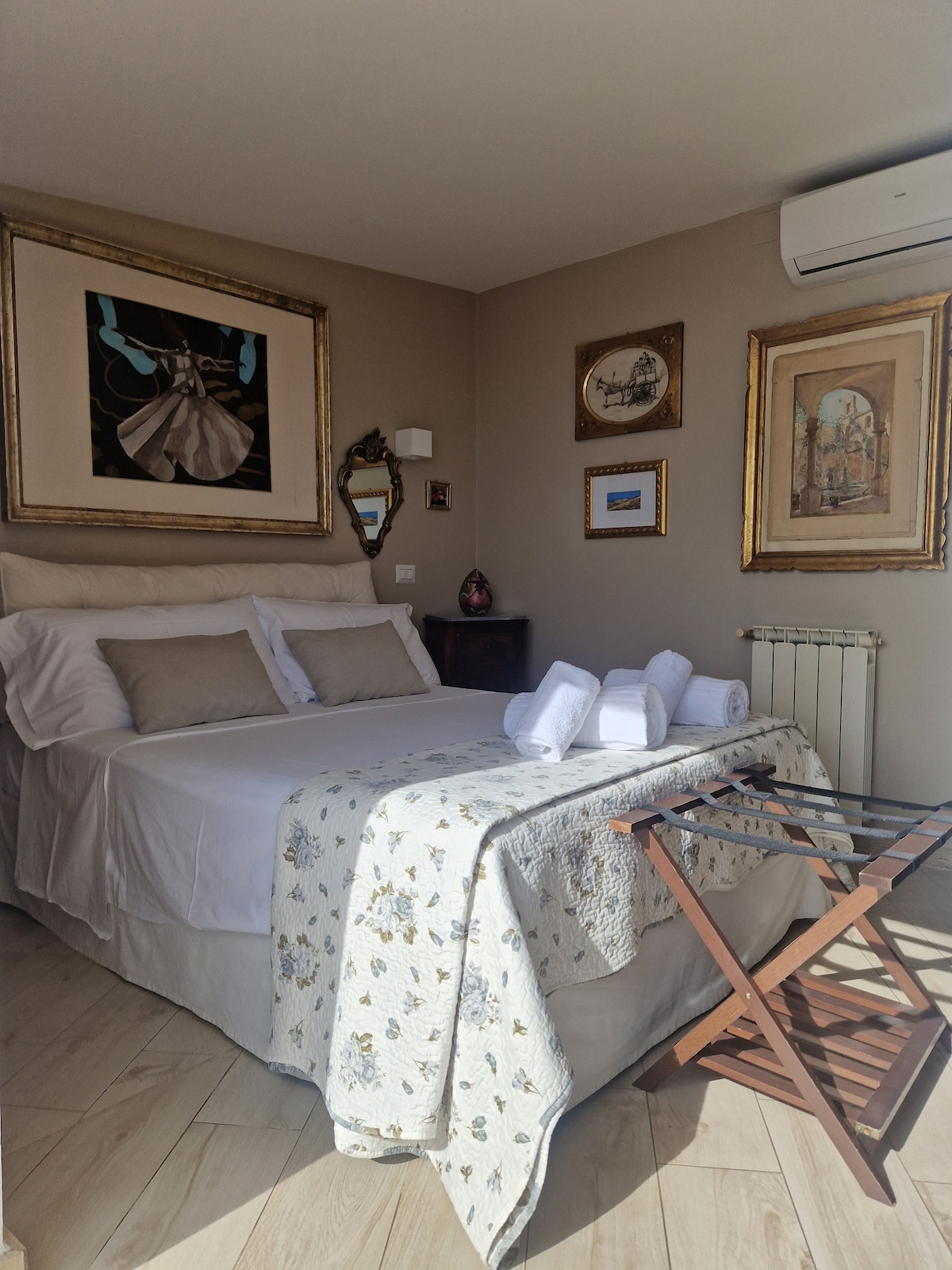 Etna Apartment is a small, well-furnished 28 sqm studio apartment composed of a single room with kitchenette and a small toilet with shower. It is surrounded by a large panoramic terrace of 65 sqm where you can admire the beauties of Taormina: Etna, the bay of Giardini Naxos and Castelmola. Etna Apartment is a 5- minute walk from the historic center of Taormina. It is the ideal place for couples, and no, who want to spend a romantic and unforgettable stay.