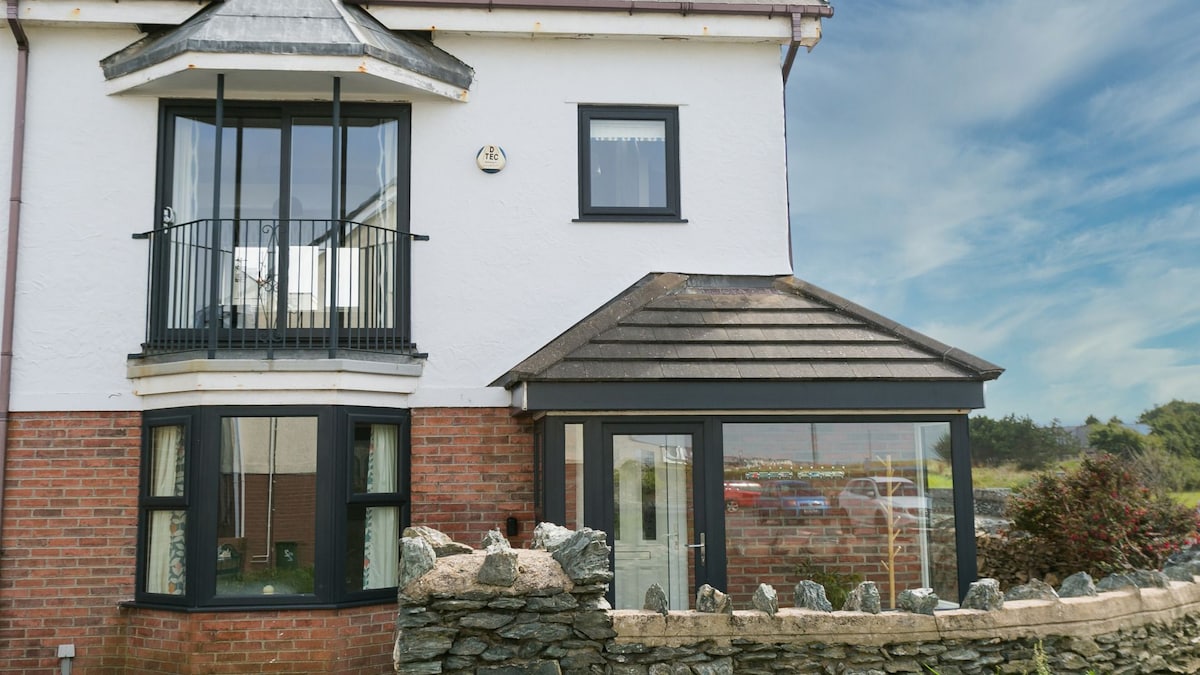 Beautiful semi detached townhouse on the coast in Trearrdur Bay, Holy Island. Accommodation over 3 floors, off road parking for 2 vehicles, WiFi, close to beaches, local amenities, coastal path, stylish interior welcoming six / seven guests, perfect for families and friends. After a day exploring Anglesey, spend time on the first floor where you can rustle up meals in the modern well equipped kitchen, drinks / dinner on the balcony or patio to finish your perfect day, Lounge with smart TV.