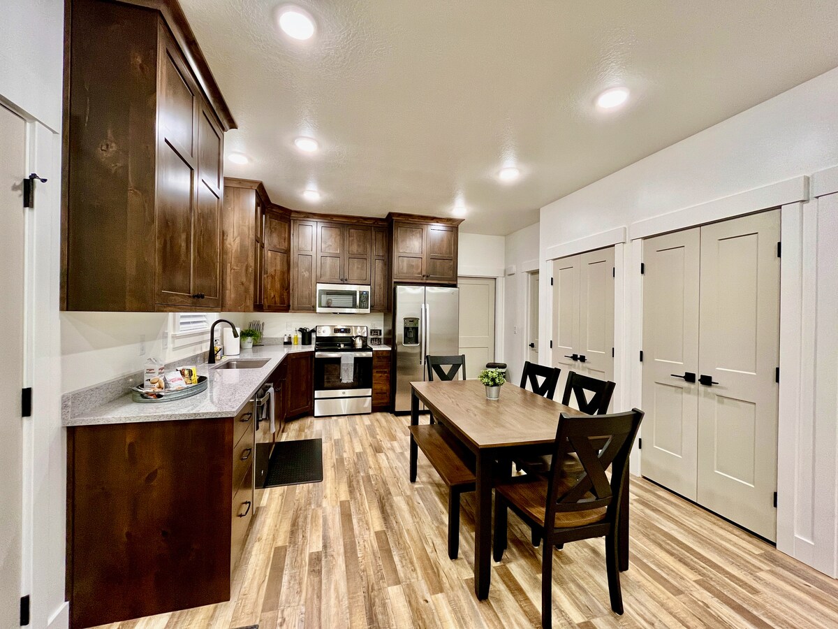 Spacious, family-friendly retreat with modern farmhouse charm. Enjoy a private sauna, hot tub, fire pit, full kitchen, and large yard with a trampoline—perfect for kids to play. Features 2 cozy bedrooms, laundry, and generous parking. Located near Lagoon, Downtown Ogden, ski resorts, lakes, hiking trails, and off-road parks. Thoughtfully designed for comfort, fun, and unforgettable family memories.