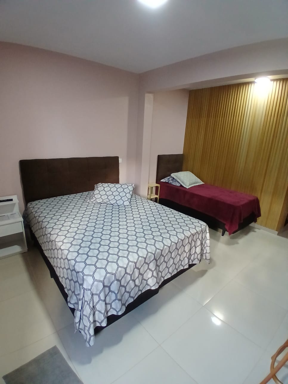Comfortable room for one person, a couple or up to four people, with a double bed and two single beds, with a wardrobe, wall fan, full bedding, with Wi-Fi and free parking, the shared bathrooms are next to the room, we serve optional breakfast (paid separately).