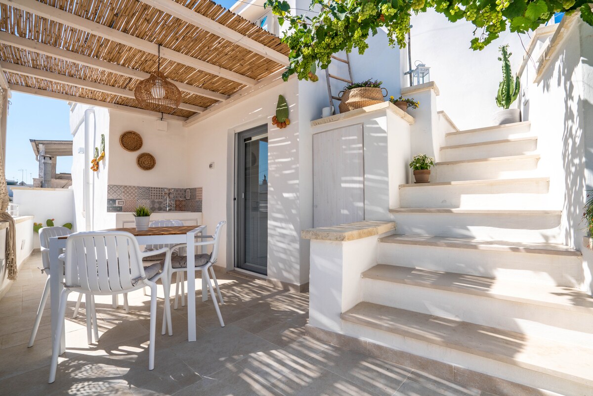 The apartment welcomes visitors with a characteristic and welcoming living room. The exposed stone walls give a rustic character and seem to speak of the ancient traditions of the land of Puglia, while the terracotta floors add warmth and authenticity to the environment. The house has a small fully equipped kitchen area that invites you to prepare delicious dishes inspired by Apulian cuisine, using fresh and genuine ingredients from local markets.
