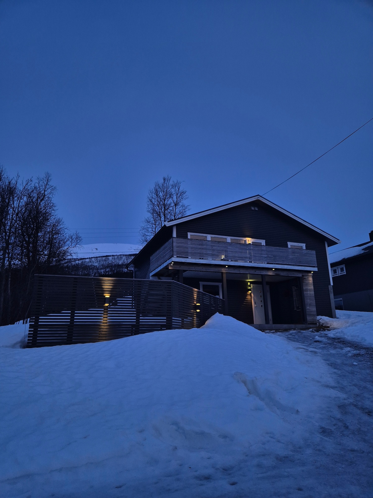 Main floor in a horizontally divided single-family home, 80 sqm in total with two bedrooms and a daybed in the living room, providing sleeping space for 5. Hamna Sør, Tromsøya. Immediate access to the cross-country ski trail network right across the house. 4 min to the bus, frequent departures to the city center, takes about 25 min. Grocery store 7 min walk. Free parking on the property for one car. South-facing terrace and balcony with sea view provides midnight sun in summer, and good opportunity for northern lights in winter. Modern, comfortable, fully equipped kitchen. Guests have access to everything