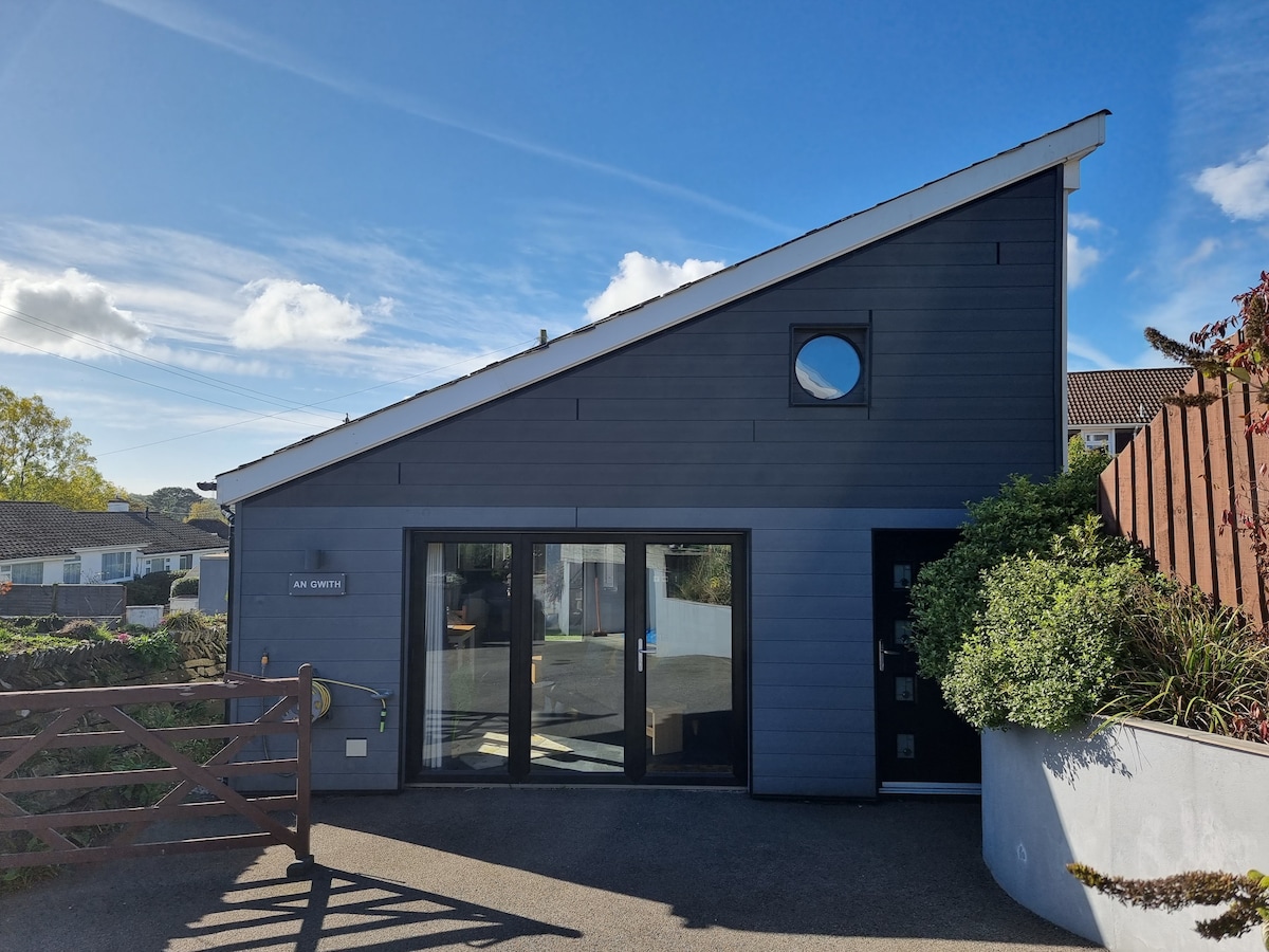 An Gwith is a modern, self-contained & fully equipped 1 bedroom detached studio annexe set in a peaceful semi-rural village with easy access to the city. The downstairs space has open plan living with a kitchen, lounge & dining area; separate toilet & spacious shower room. The spiral staircase leads to a cosy mezzanine level bedroom. There is also a patio & garden area with a private hot tub, perfect for morning coffee & relaxing in the evening. Ideal for couples & business travellers