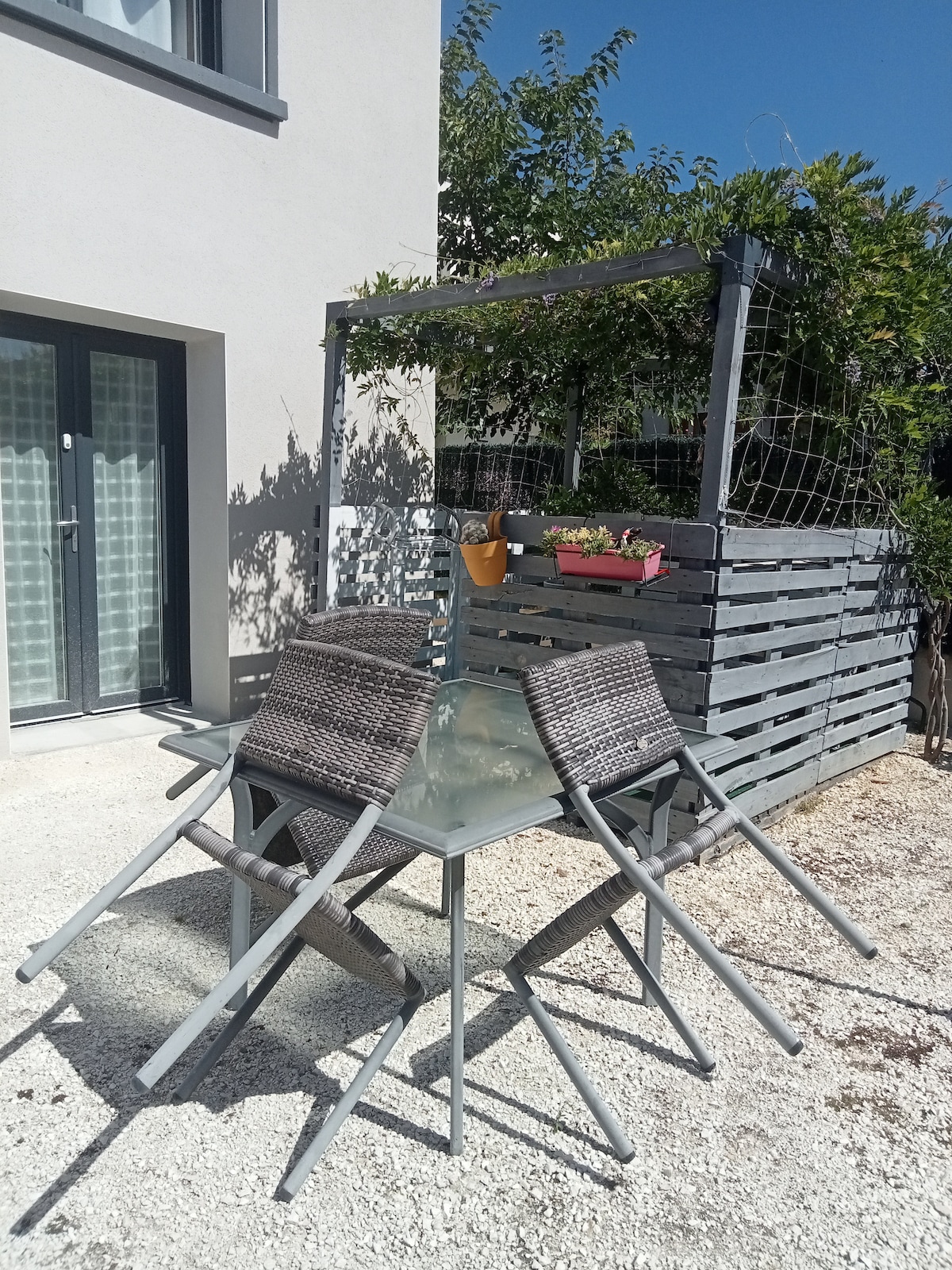 Nice new studio of about 50 m2, located in the heart of the village of La Murette in Isère, 7 minutes from Voiron, 10 minutes from Lake Paladru, 3 minutes from Reaumont train station and 45 minutes from the first stations. This beautiful home is on the ground floor of a newly renovated house. The apartment is completely independent, open to the outside by three glass doors that open onto a private terrace. Calm, nature and accessibility are the key words of this home for 4. Come and visit us!
